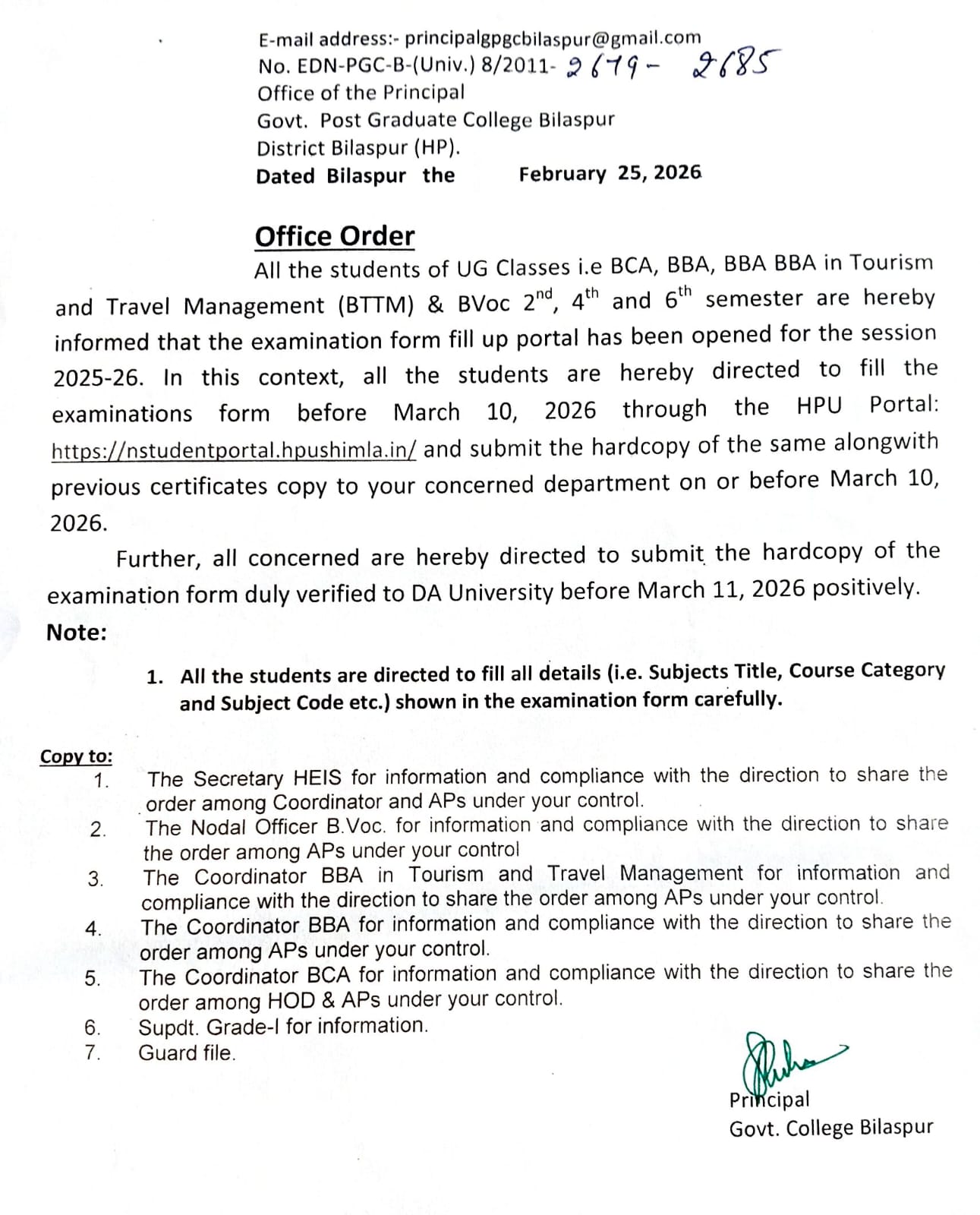 Post COVID world is a different world and at GC Bilaspur we are ready to face every challenge to adapt into this new world. I wish all the students a grand success in their career and prosperity in future life.