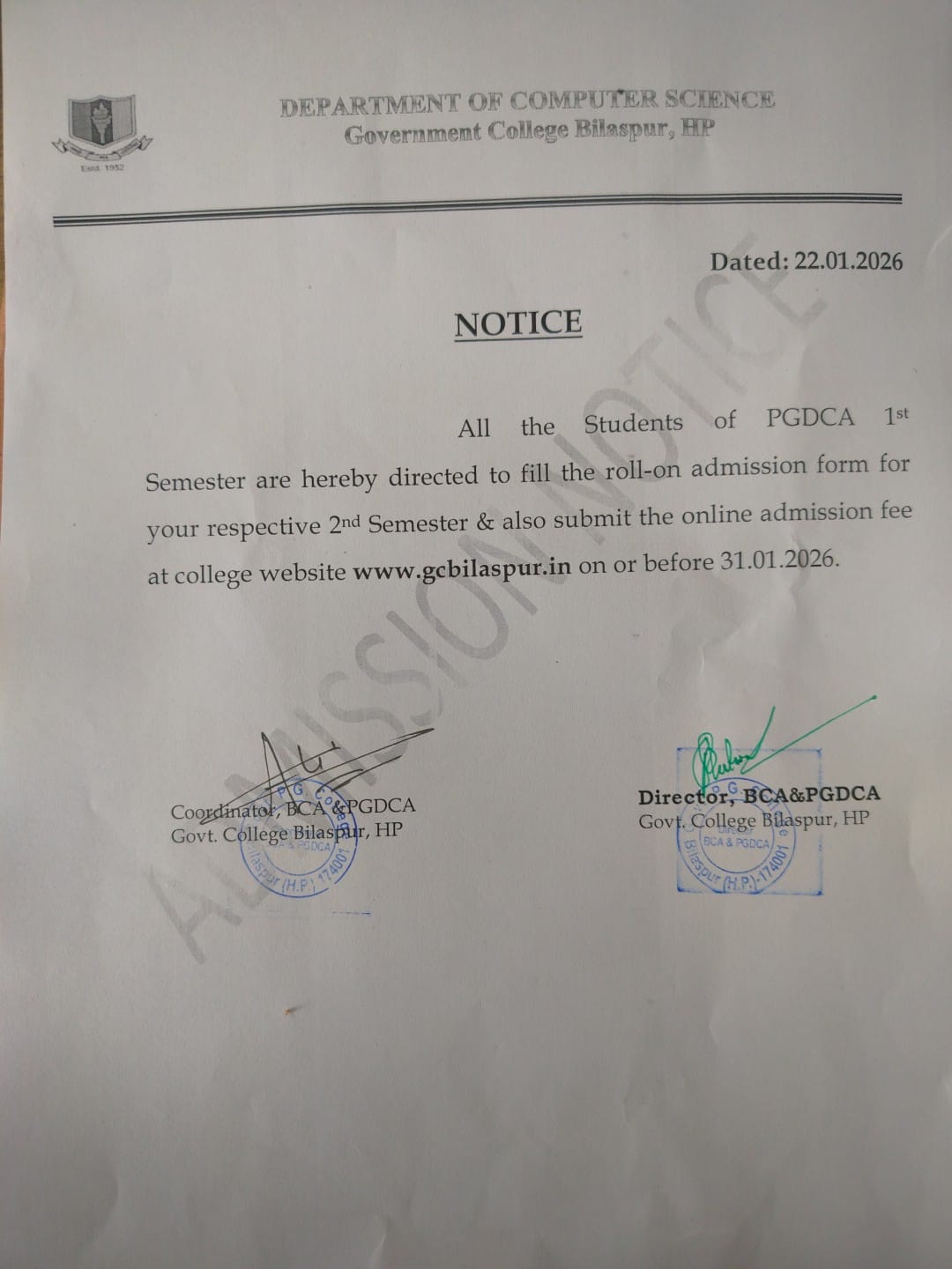 Post COVID world is a different world and at GC Bilaspur we are ready to face every challenge to adapt into this new world. I wish all the students a grand success in their career and prosperity in future life.